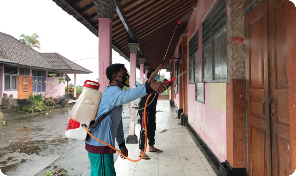 penyemprotan disinfektan telah berlangsung 10 hari sejak 21 Maret 2020, dan terus dilakukan secara berkala dan berkelanjutan berdasarkan perkembangan situasi dan kondisi atau Surat Edaran dari Pemerintah.