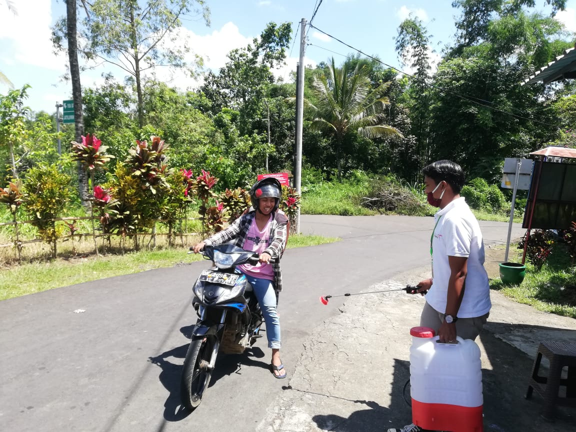 Di pintu masuk Desa Jatiluwih dilakukan penjagaan serta dilakukan penyemprotan disinfektan dan pemberian hand sanitaiser serta menghimbau warga masyarakat yang menuju Jatiluwih untuk menggunakan masker.
