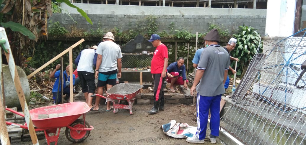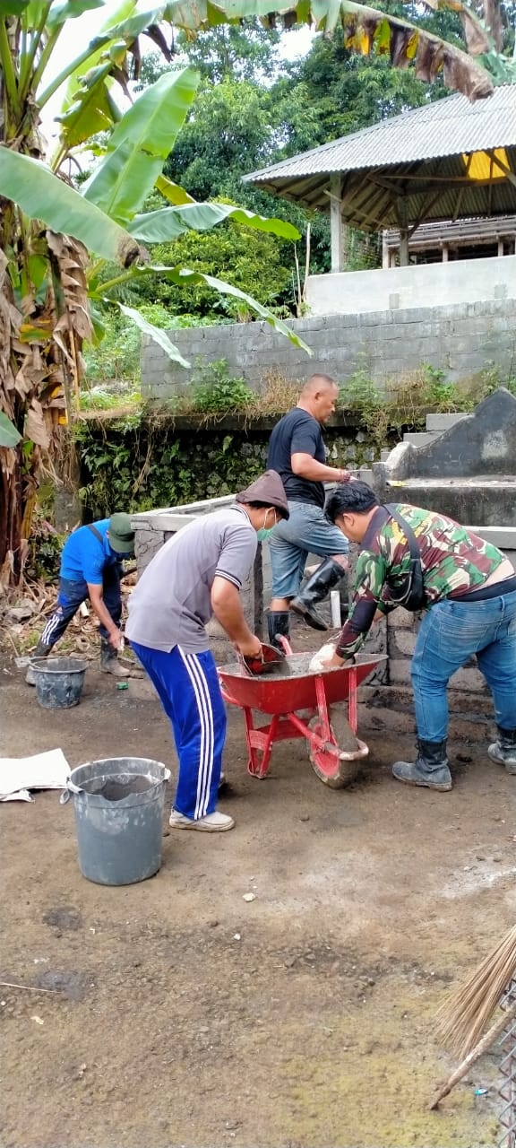 Kegiatan gotong-royong pembuatan penyengker Baturan Ratu Made dilingkungan Kantor Desa Jatiluwih bersama Aparat desa dan BPD Desa Jatiluwih.