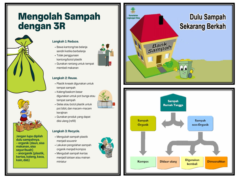 3. Recycle (mendaurulang) : memanfaatkan kembali sampah setelah mengalami proses pengolahan.