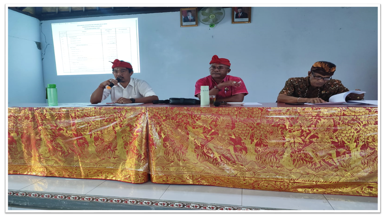 Kamis,29 Desember 2022,Pemerintah Desa Jatiluwih menggelar Musyawarah Desa dalam rangka penetapan Anggaran Pendapatan dan Belanja Desa (APBDes) Tahun Anggaran 2023.Musdes yang dihadiri oleh Perbekel,Perangkat Desa dan staf desa Jatiluwih serta Ketua BPD Jatiluwih beserta anggotanya yang bertempat di Aula Kantor Desa Jatiluwih.