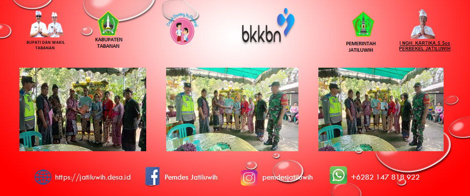 Acara Penyerahan dihadiri PLKB Kecamatan Penebel bersama Perbekel Desa Jatiluwih,Bendesa Adat Gunungsari,Kader TPK Desa Jatiluwih,Bidan Desa,Kasi Pemerintahan Desa Jatiluwih,Kawil Gunungsari Kelod,Babinsa,Babhinkamtibnas,Ketua TP PKK Desa Jatiluwih.